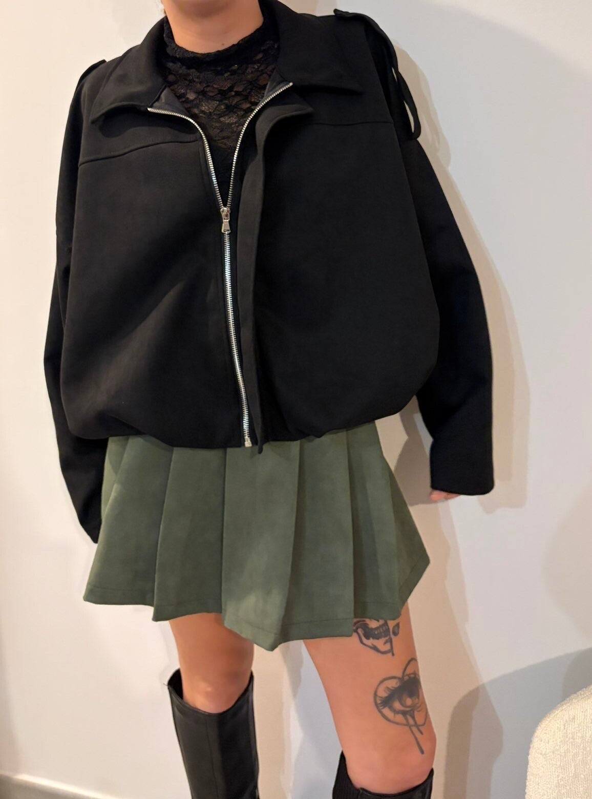 Veste Noir courte en suédine avec fermeture éclair