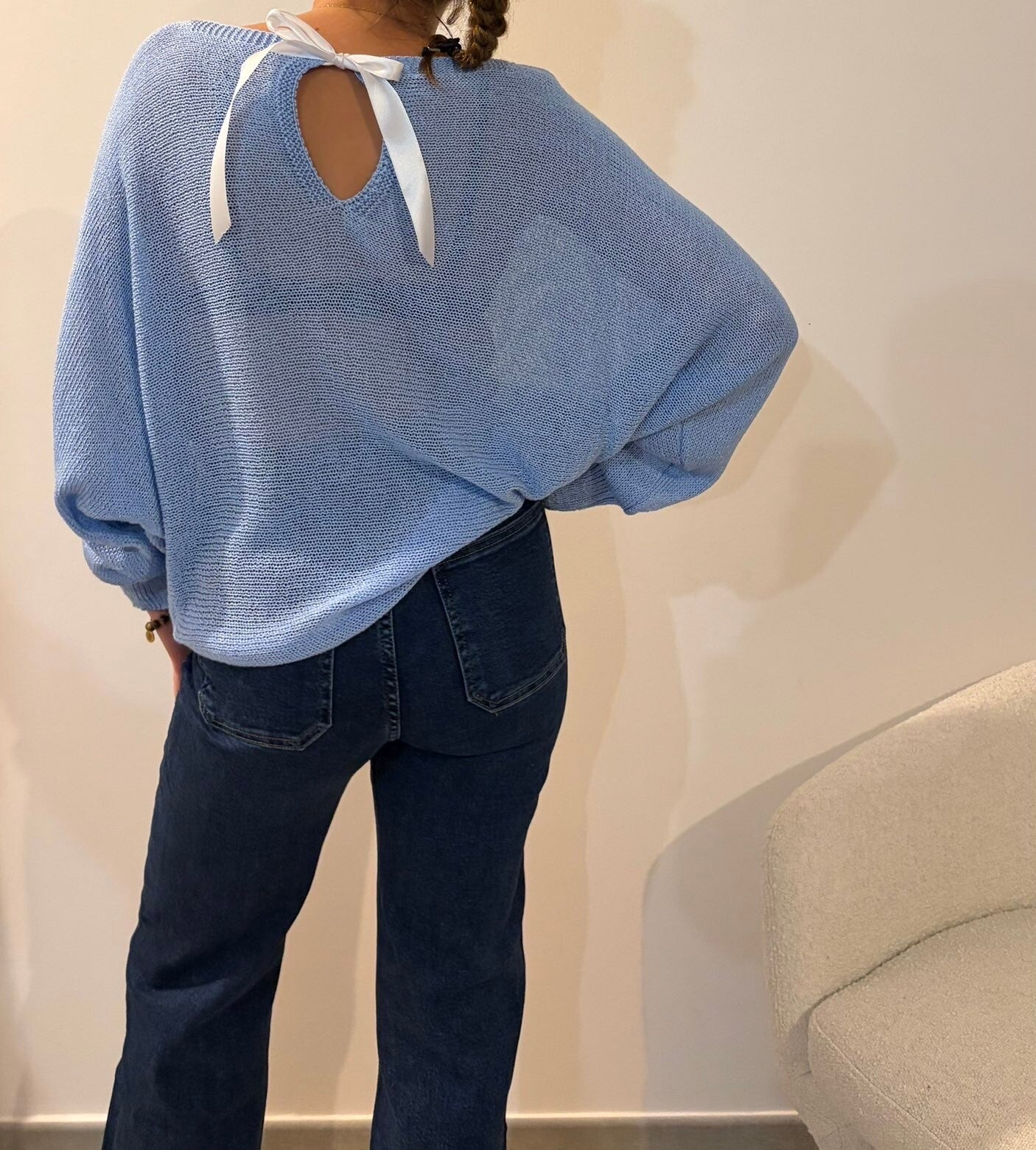 Pull Marla en maille avec ruban blanc au dos