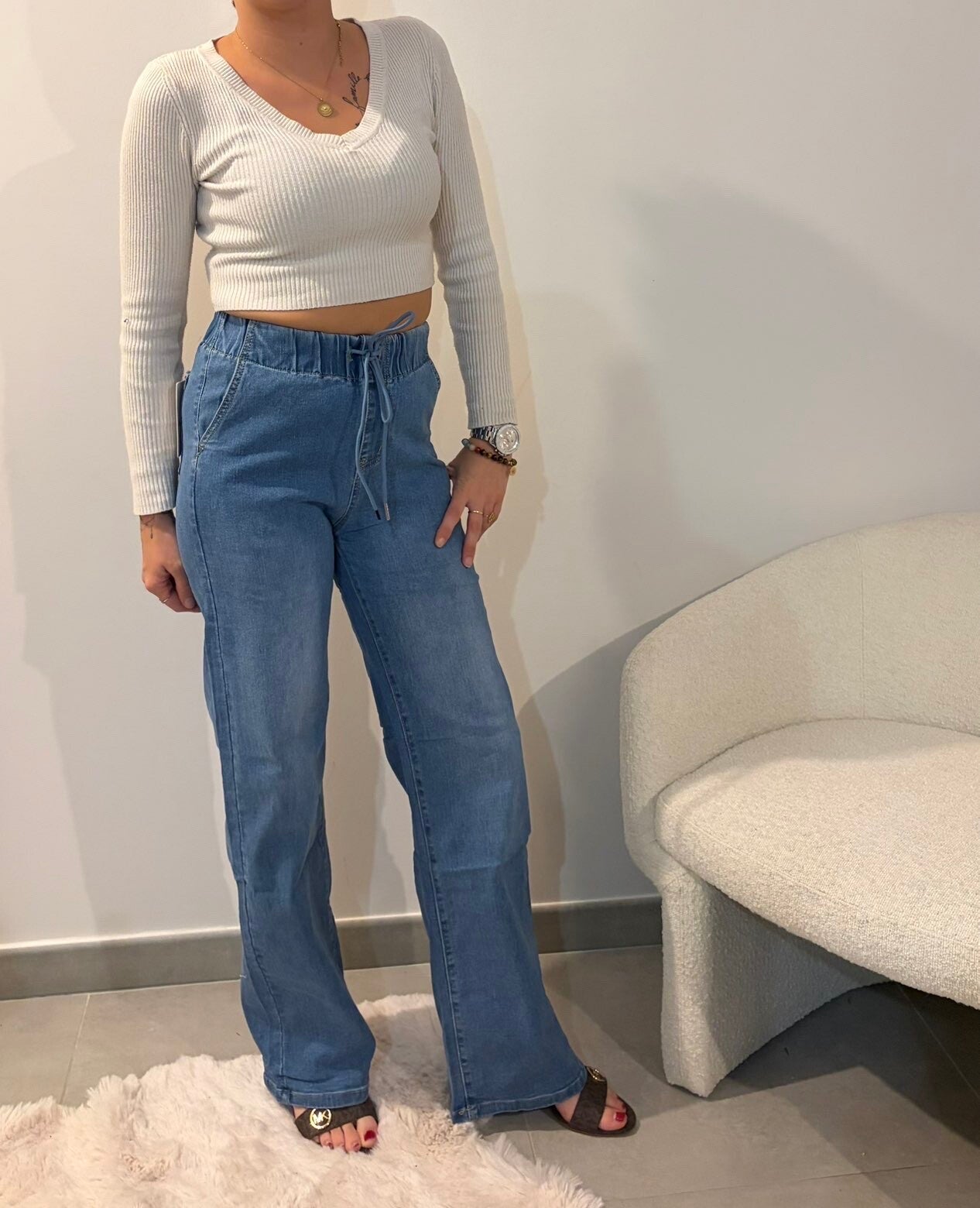 Jeans Wide Leg taille élastique couleur bleu