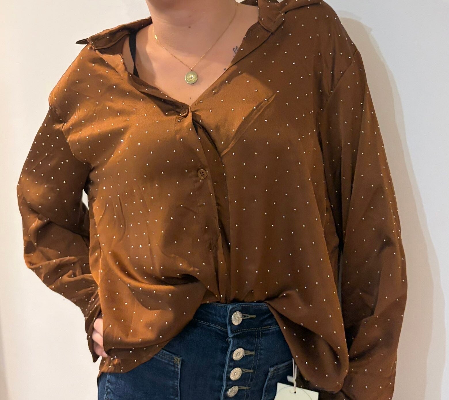 Chemise satin cloutée Marron