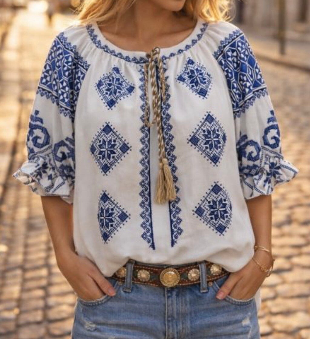 Top imprimer à nouer bleu