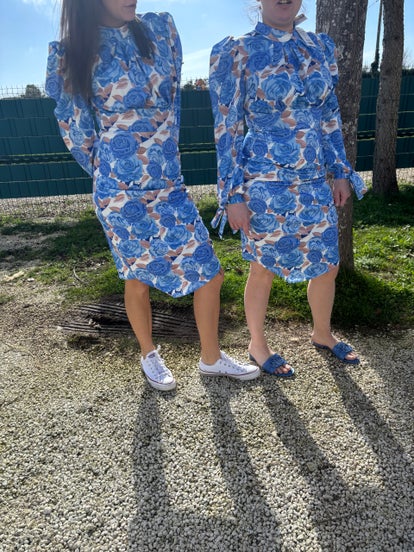 Ensemble élégant composé d’un t-shirt oversize à la coupe fluide et d’une jupe midi en dentelle raffinée, offrant un parfait équilibre entre confort, modernité et féminité.